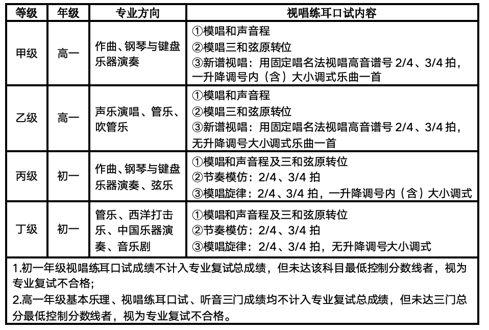 视唱练耳口试考试等级说明