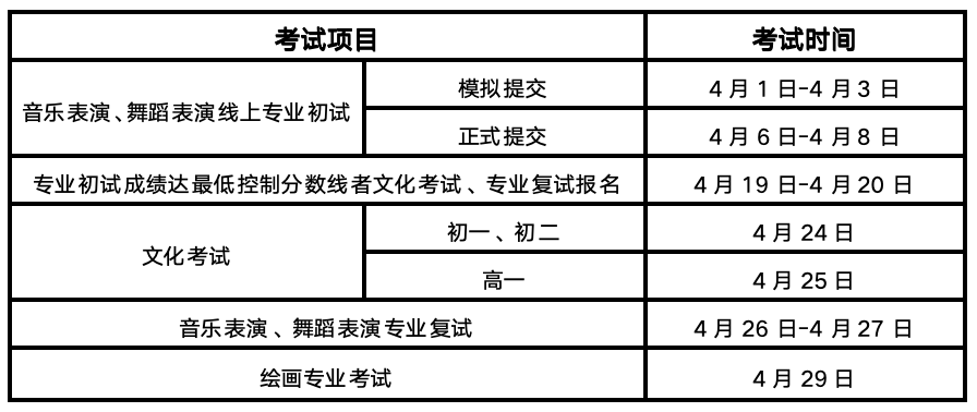 8.音乐表演、舞蹈表演初试及绘画专业报名时间: