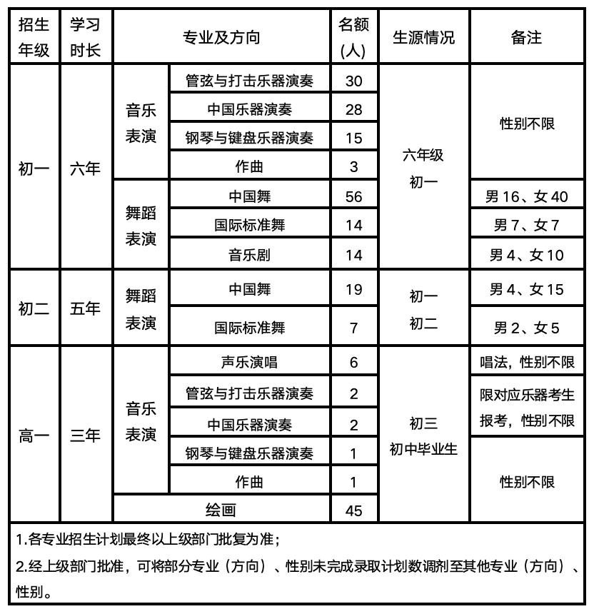 6.音乐表演、舞蹈表演专业初试采取线上提交考试视频形式,专业初试成绩达最低控制分数线者参加线下文化考试及专业复试,文化考试及专业复试具体安排以考前公告为准。