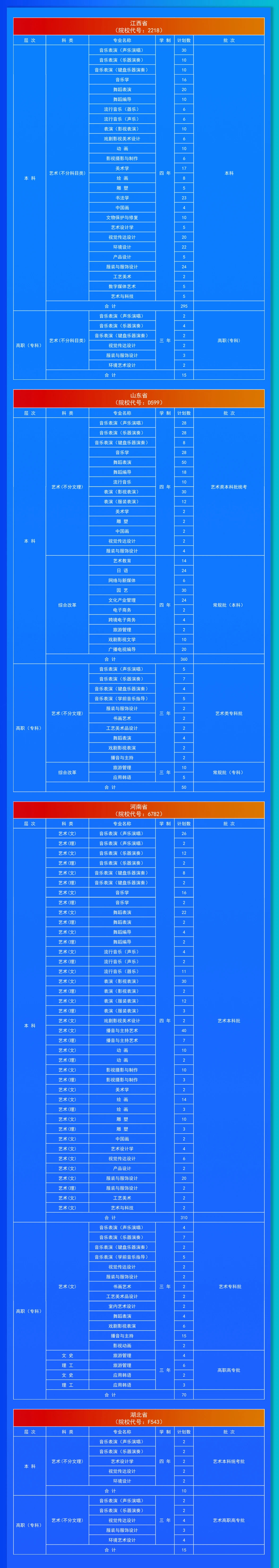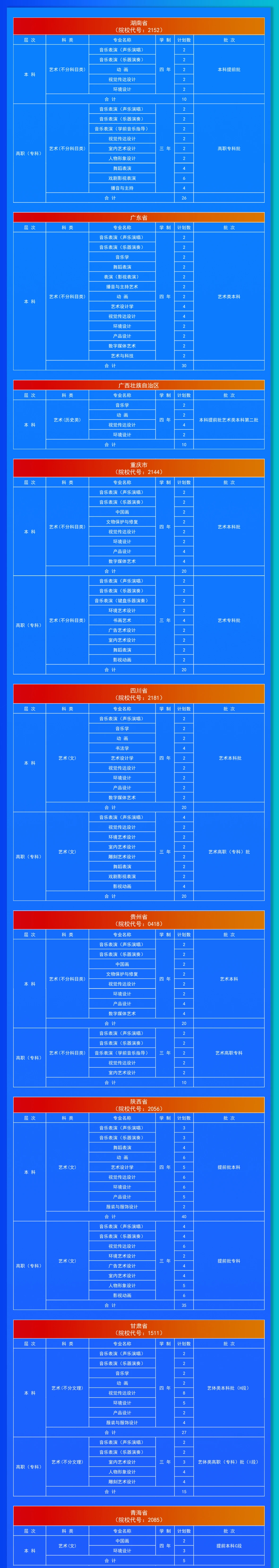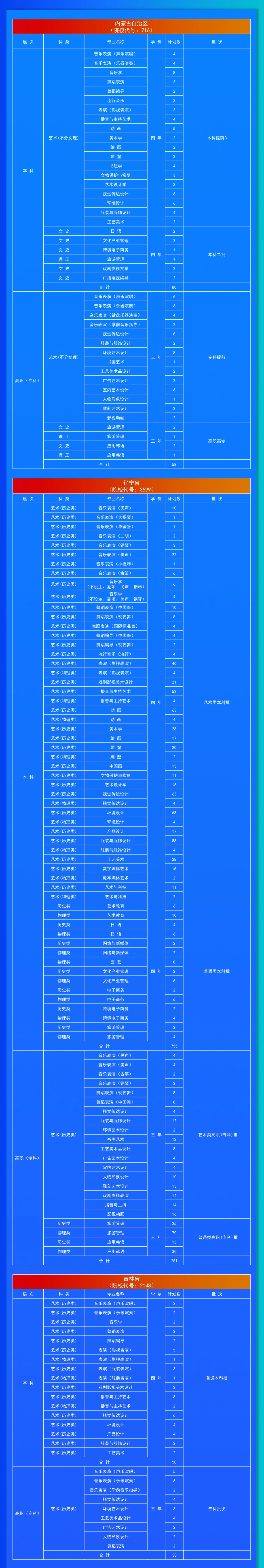 大连艺术学院2024年分省专业招生计划