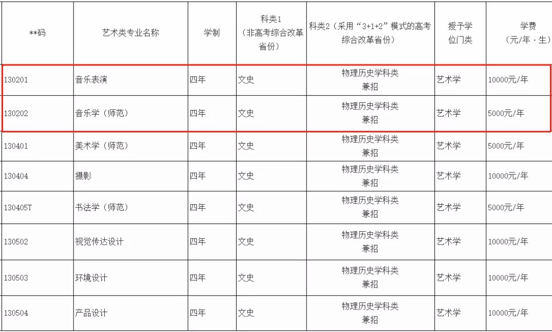 ⑤黑龙江音乐、山西音乐书法、河南艺术类: