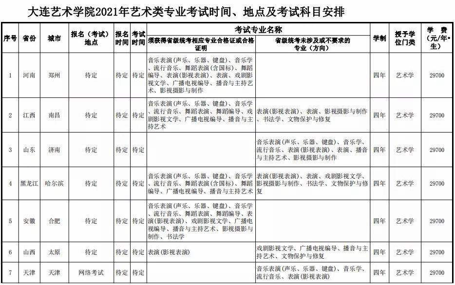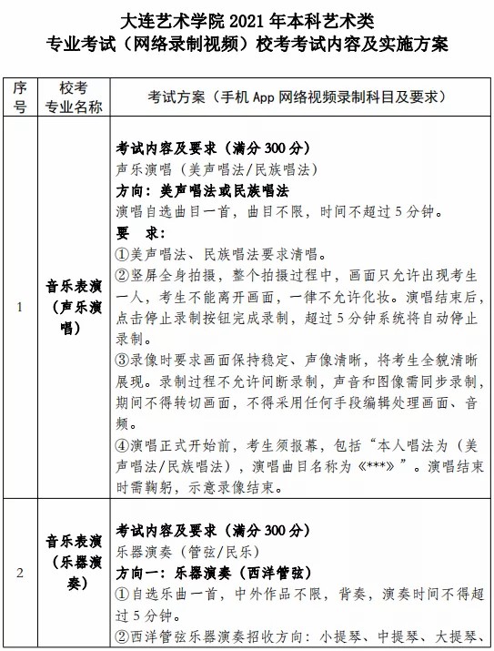大连艺术学院2021年音乐类招生简章