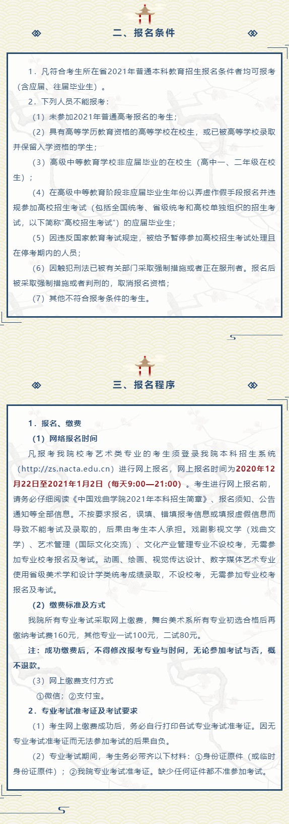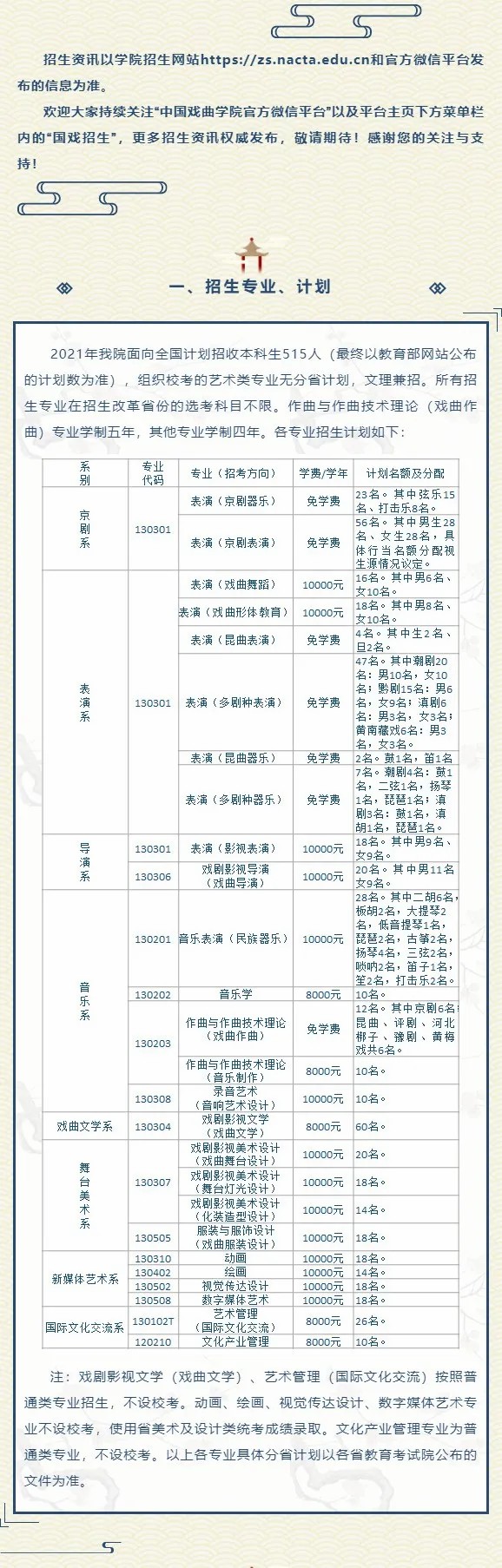 中国戏曲学院2021年本科招生简章