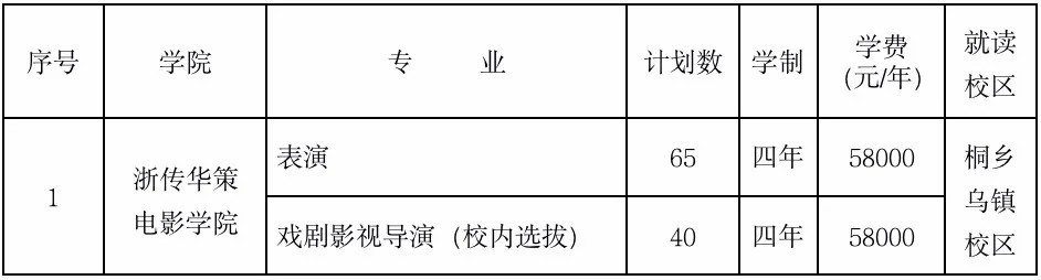 【注】:1.广播电视编导专业拟面向浙江、安徽、福建、甘肃、广东、广西、贵州、河北、河南、黑龙江、湖北、湖南、江苏、江西、辽宁、内蒙古、山东、山西、陕西、上海、四川、天津、云南、重庆等24个省份招生,专业成绩承认相应省统考成绩。