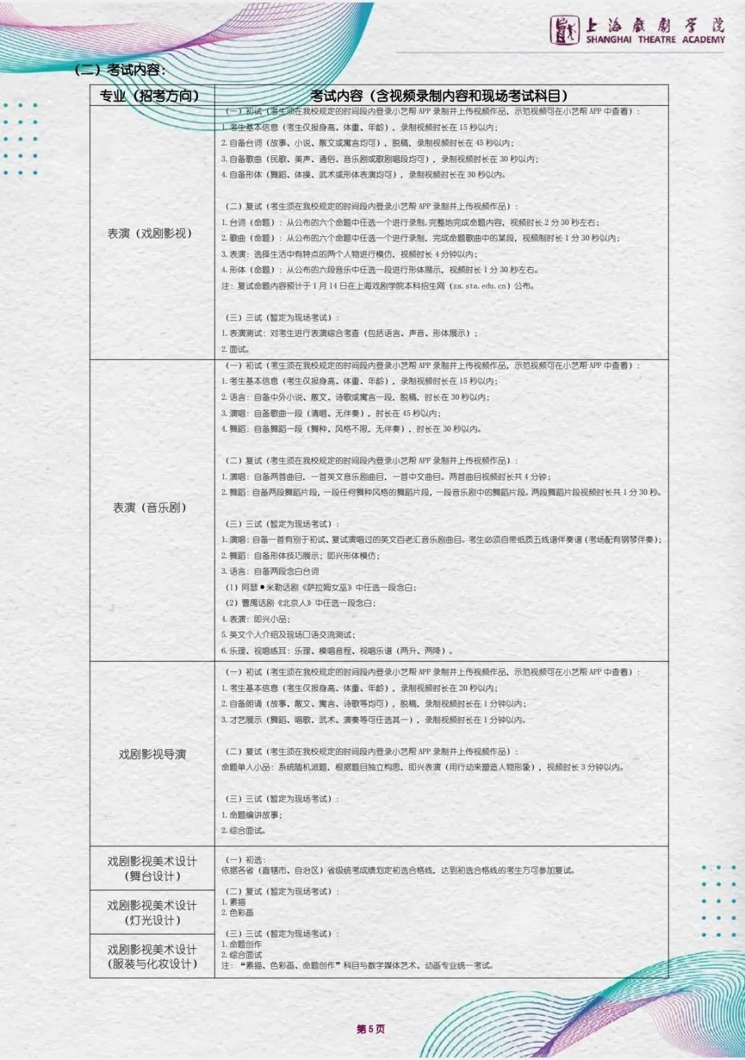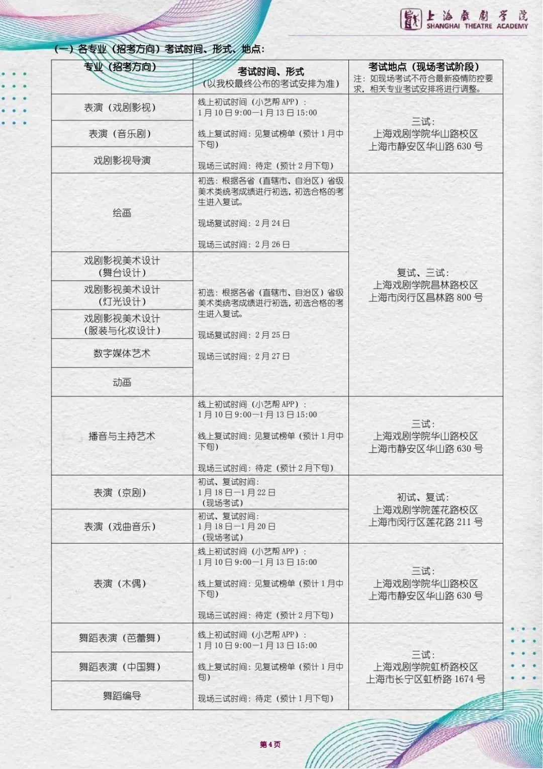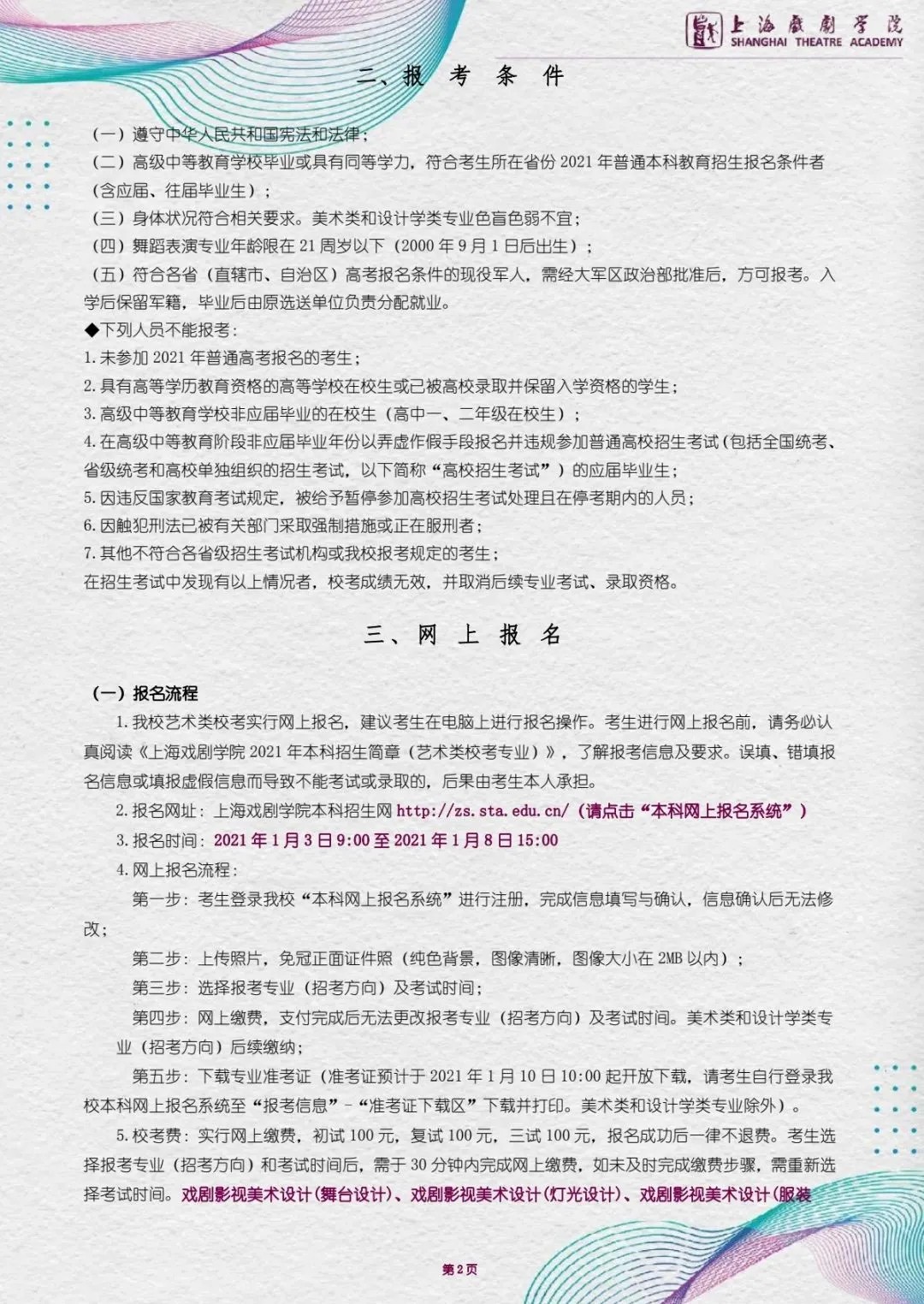 上海戏剧学院2021年本科招生简章