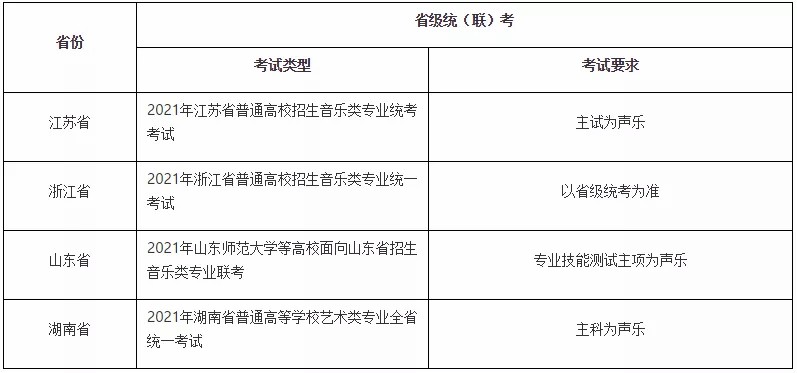 (3)使用省级统(联)考成绩作为专业考试成绩,各省级专业考试要求如下: