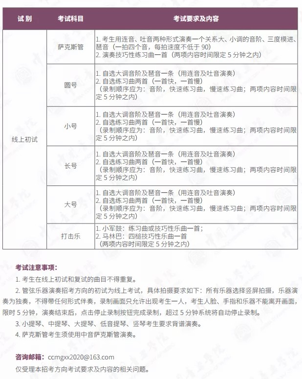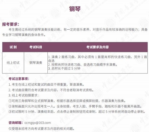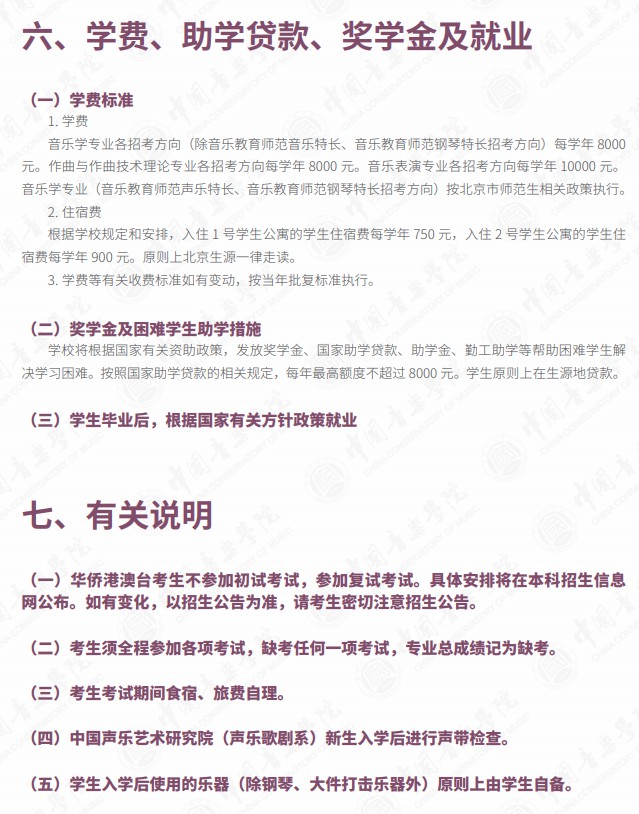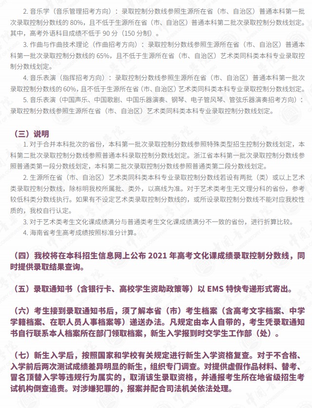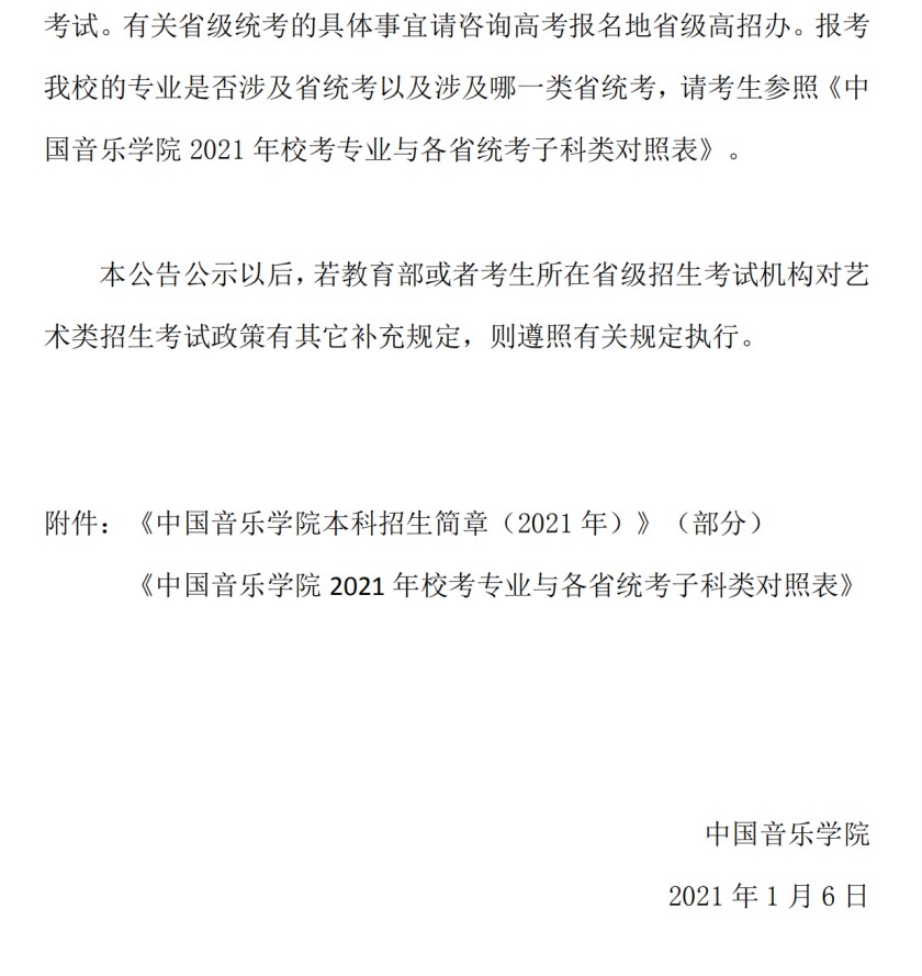 附件:《中国音乐学院本科招生简章(2021年)》(部分)