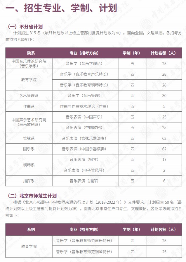中国音乐学院2021年本科招生简章