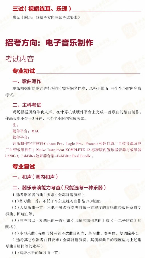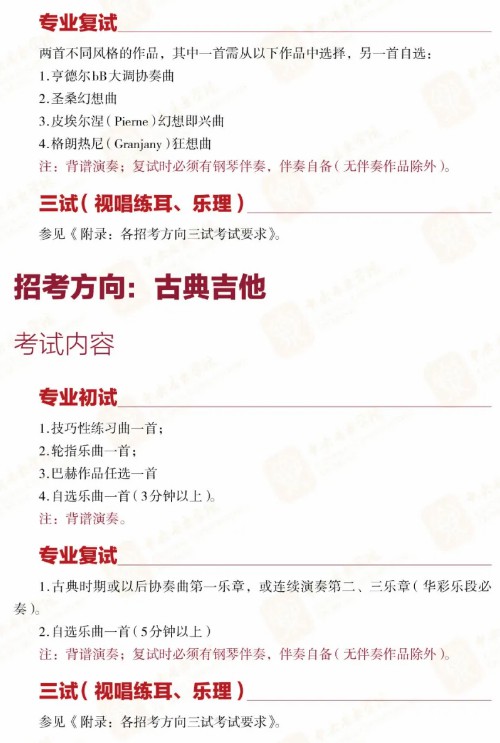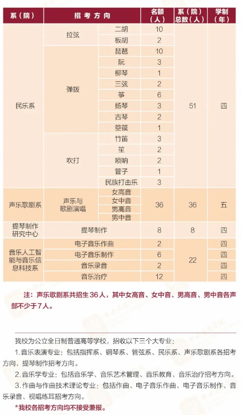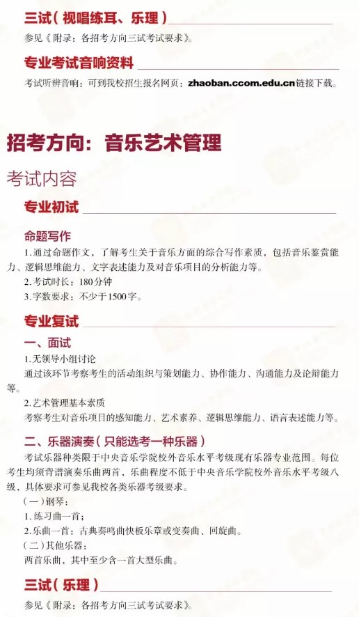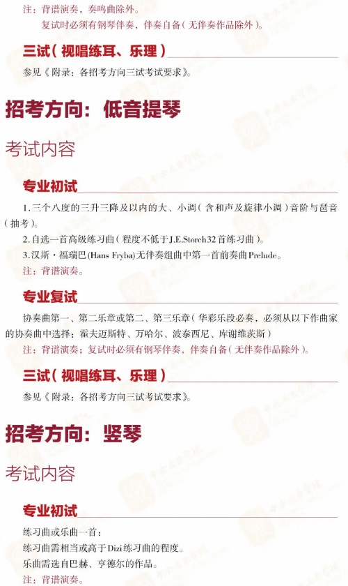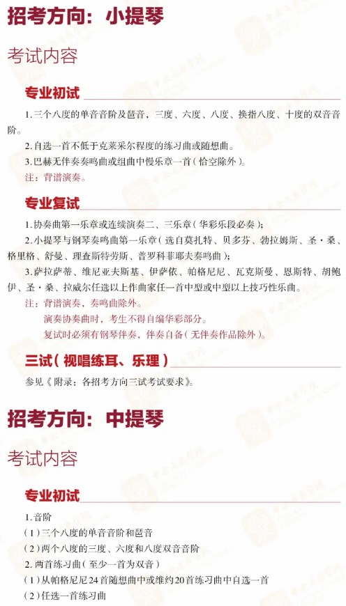 (来自中央音乐学院招生办)