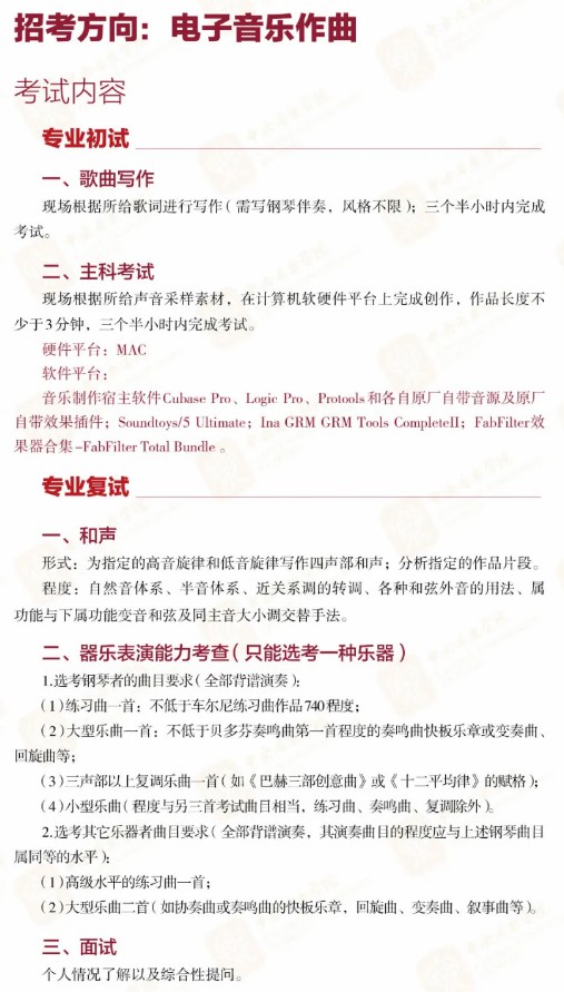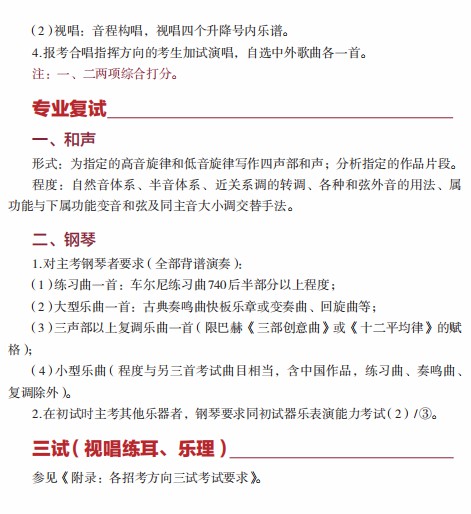作曲系、指挥系、音乐学系、音乐教育学院、钢琴系、管弦系、民乐系、提琴制作研究中心、音乐人工智能与音乐信息科技系:均以现场考试方式进行。