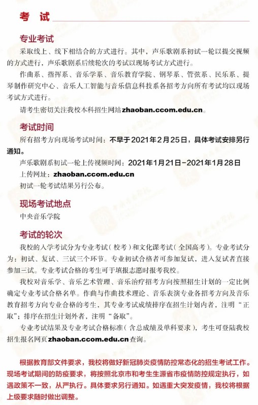 中央音乐学院2021年本科招生简章发布