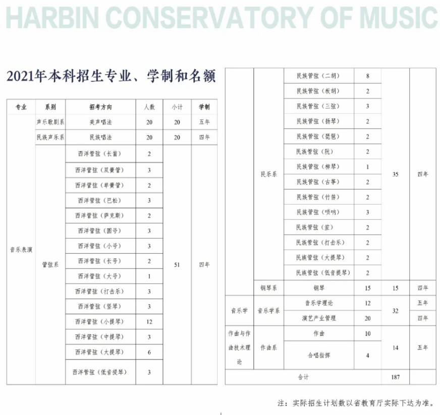哈尔滨音乐学院2021年本科招生简章