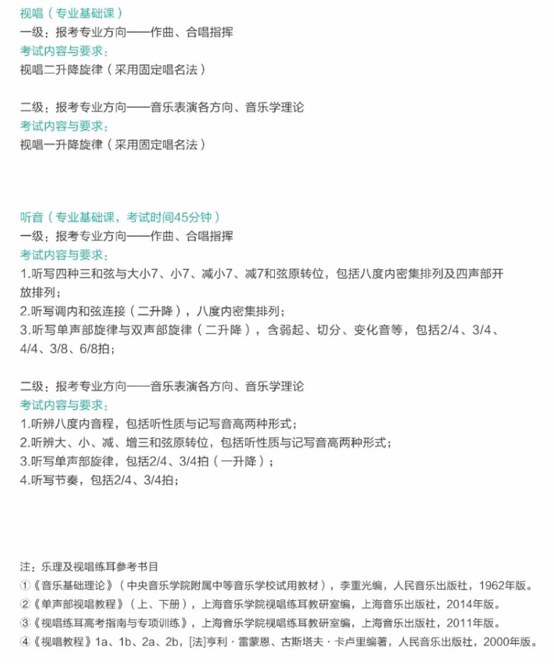 3.作曲与作曲技术理论专业作曲方向《演唱自选民歌或戏曲片段两首》中的两首作品均为清唱,不得加任何伴奏。
