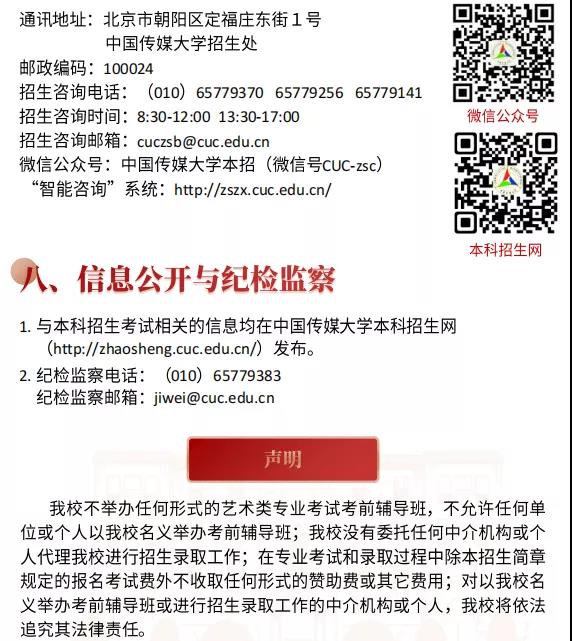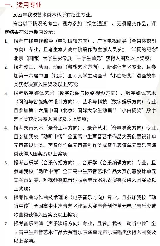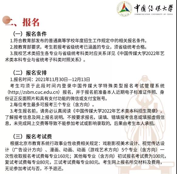 中国传媒大学2022年艺术类本科招生简章