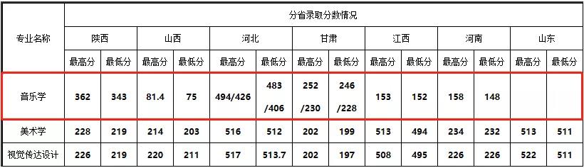 备注:河北省与甘肃省的音乐学分数为“声乐方向/器乐方向”。