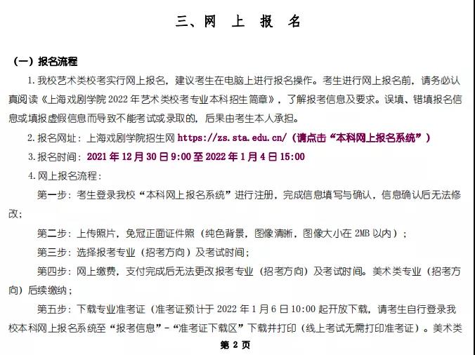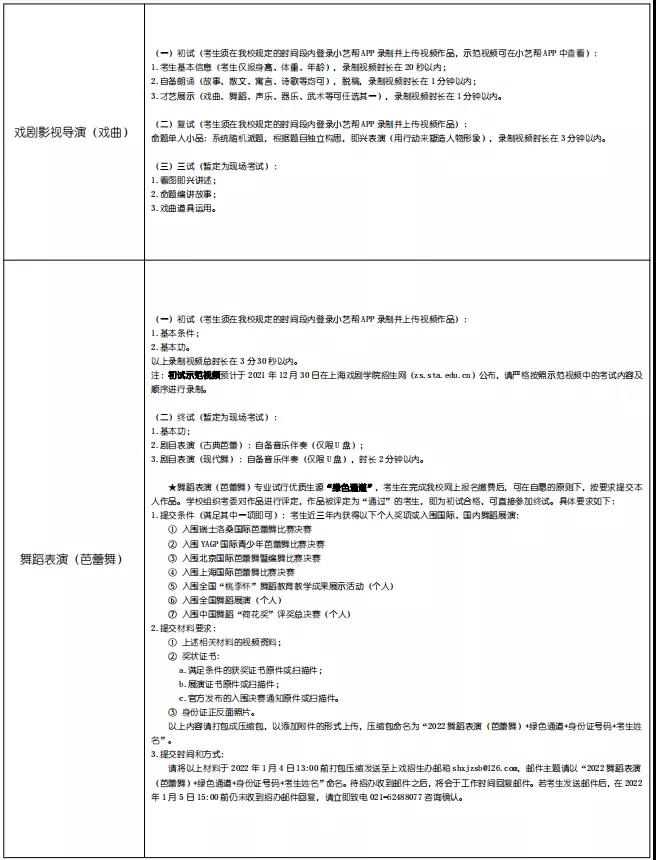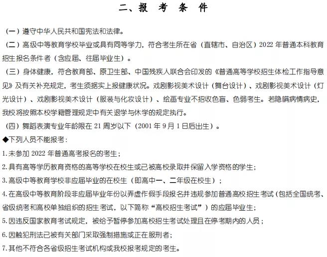 上海戏剧学院2022年本科招生简章