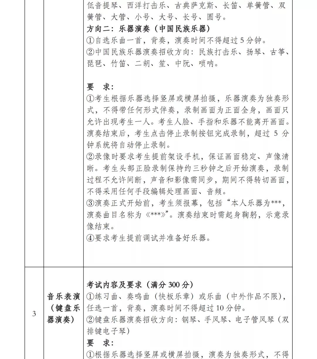设有声乐演唱、乐器演奏、键盘乐器演奏3个招考方向。