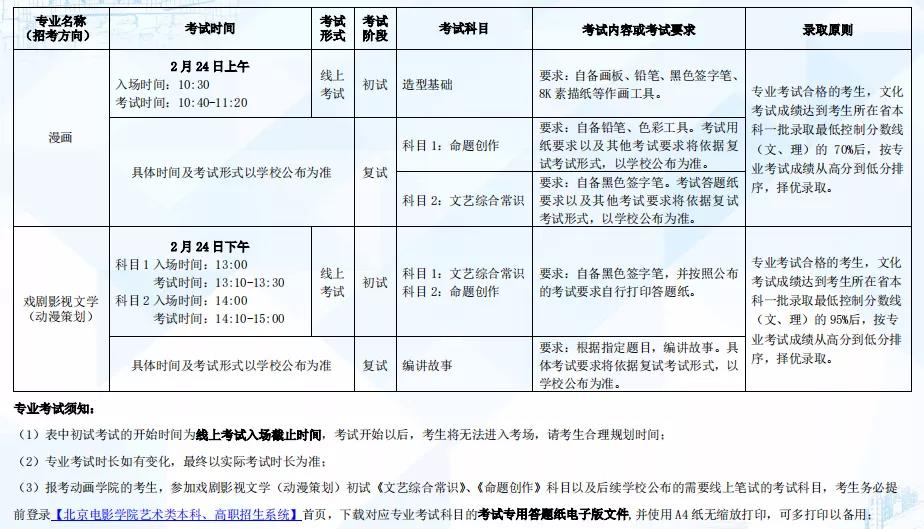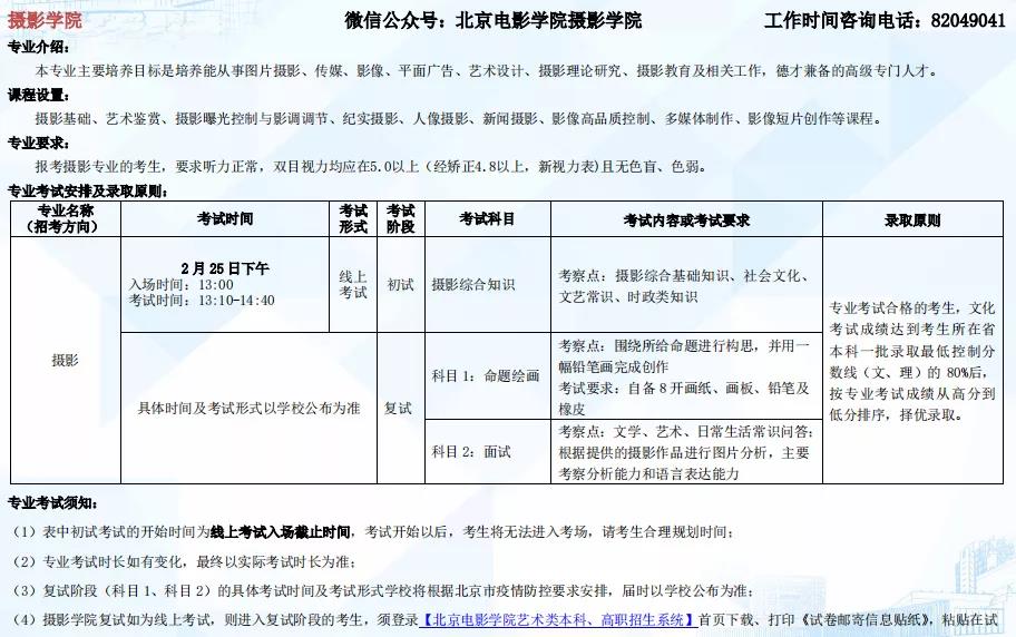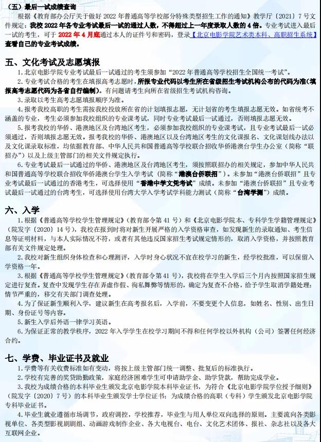 北京电影学院2022年本科招生简章