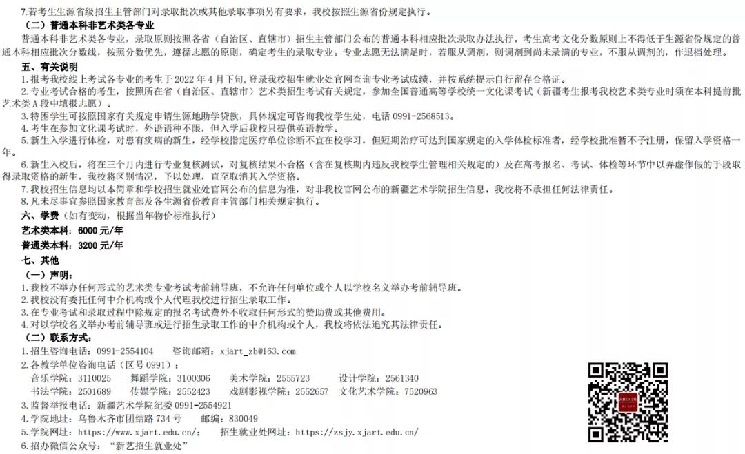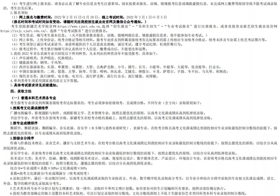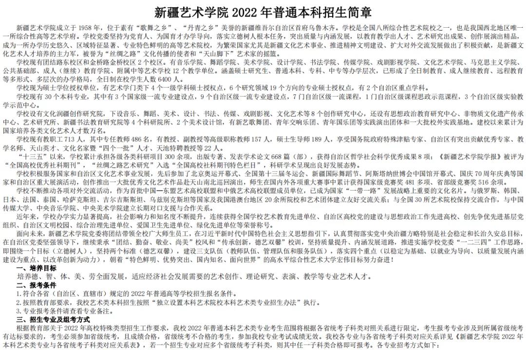 新疆艺术学院2022年本科招生简章