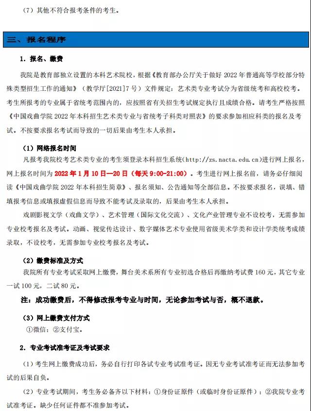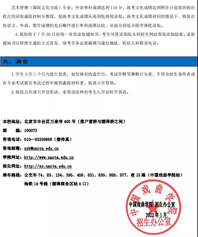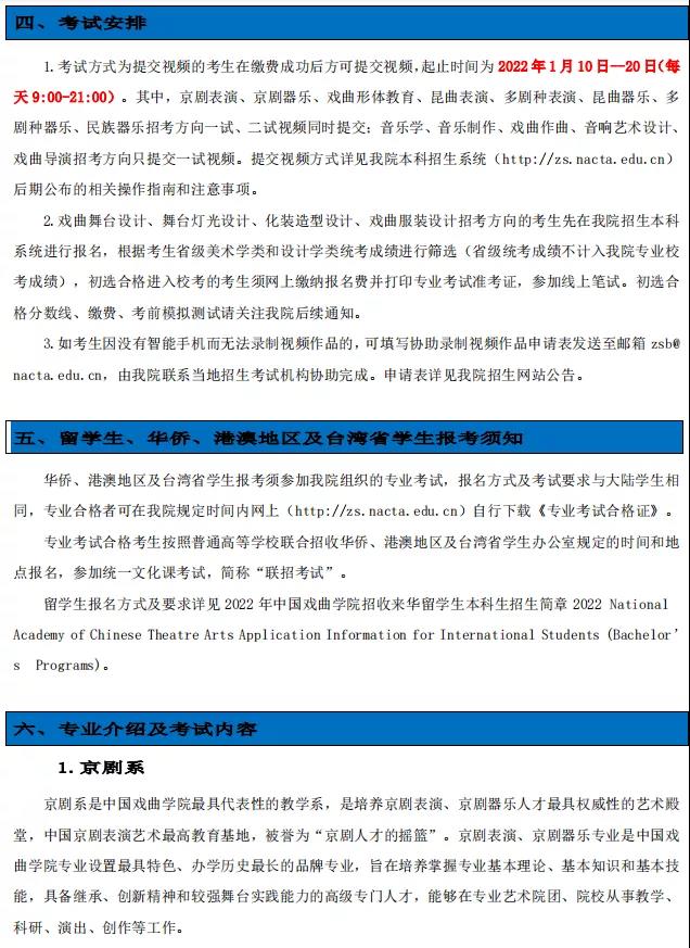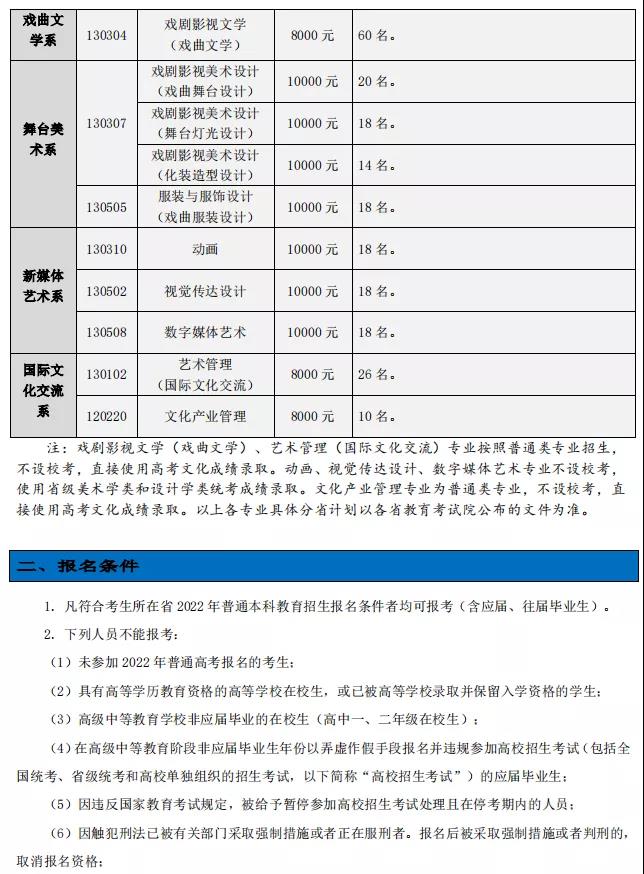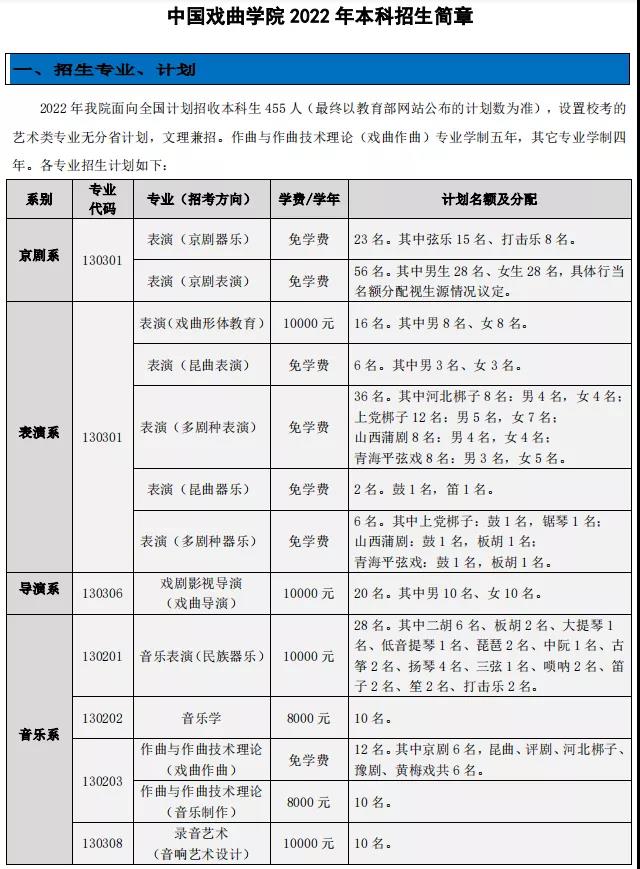中国戏曲学院2022年本科招生简章