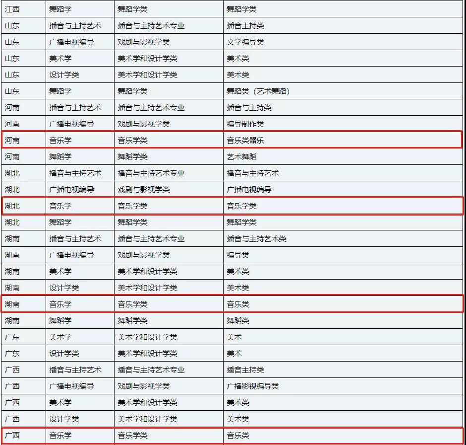 四、音乐学专业在河北省、河南省、江西省三个省份只招收器乐考生。