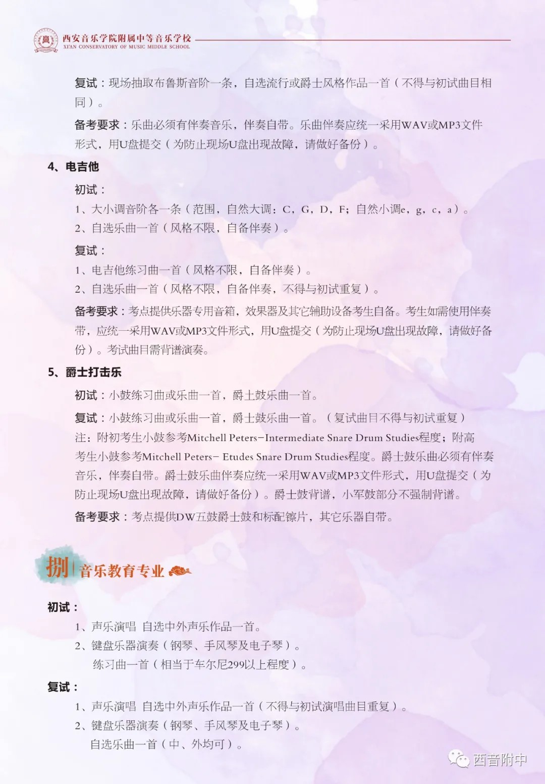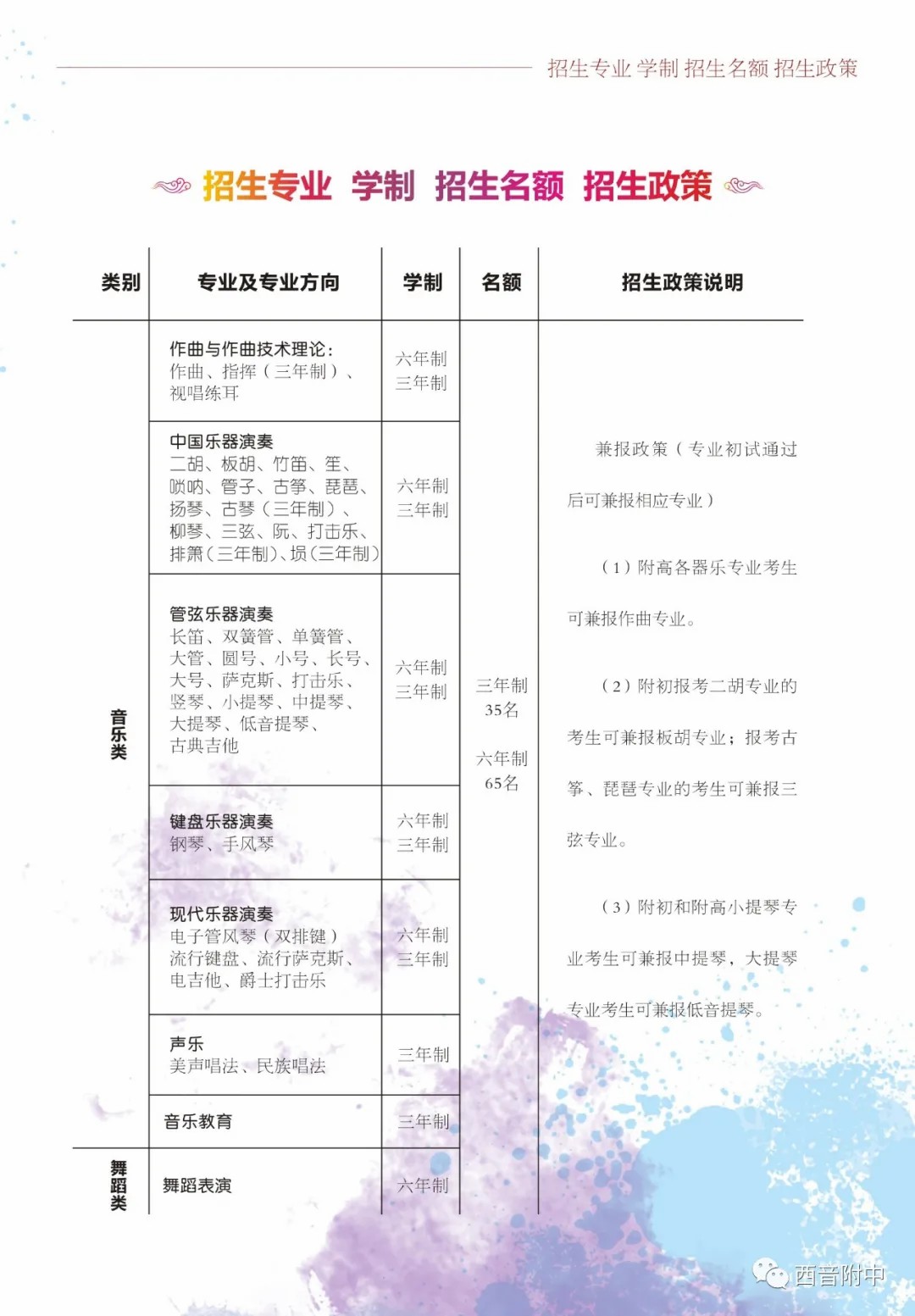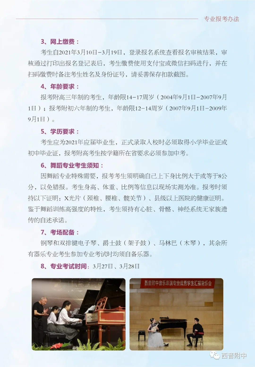 西安音乐学院附中2021年招生简章