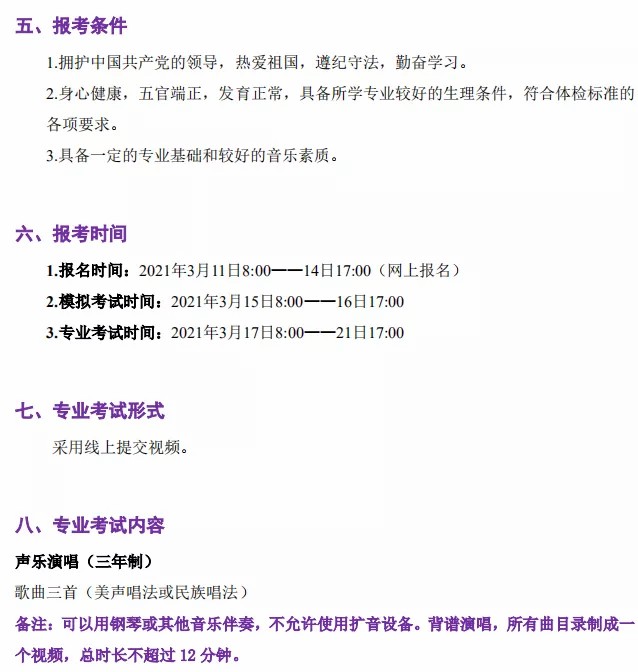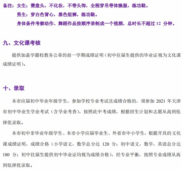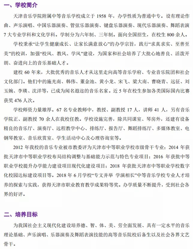 天津音乐学院附中2021年招生简章