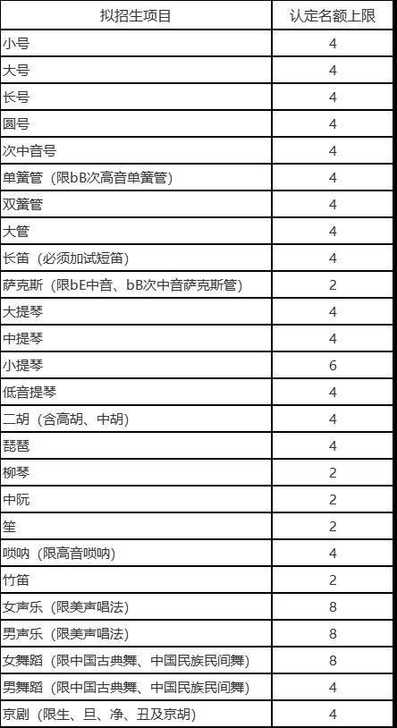 2022年变化:认定名额减少8人,竖琴、打击乐、扬琴、古琴、箫、埙、钢琴、手风琴不招。