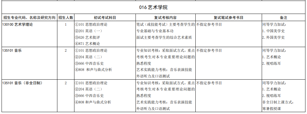 山东大学2023年音乐类硕士研究生招生简章(目录)